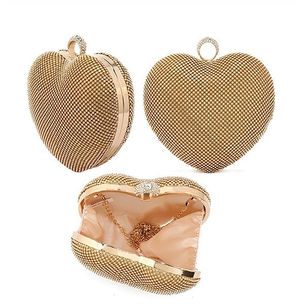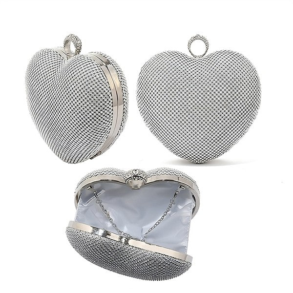 Make a dazzling impression at your next formal event with the Heart Rhinestone Ring Clutch Evening Bag. This stunning accessory is more than just a bag—it's a statement piece designed to elevate your look with a touch of elegance and sparkle. Perfect for weddings, proms, galas, and other special occasions, this clutch ensures you carry your essentials in style.