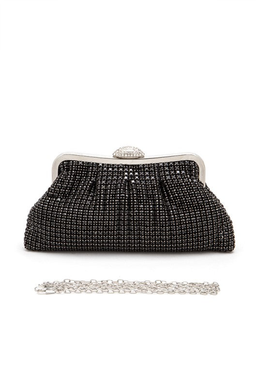 Designed for maximum impact, this clutch features a full stone embellishment on a soft structure, blending luxurious texture with head-turning sparkle. Its perfect size 10" Length 2" Width 5.5" Height holds your essential items for any special occasion. The bag includes a convenient shoulder chain for hands-free carrying, and it secures reliably with a snap-on closure. This clutch is more than just a bag—it's the ultimate glamorous statement piece for weddings, galas, and nights out!