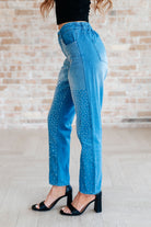 Our Beck and Call Pants will have you bedazzled from the elastic waistband to the functional belt loops. With straight legs and front and back pockets, these denim pants are both stylish and practical. Get ready to rock and roll in these rhinestone-studded wonders!