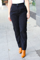 Going Your Way Black Corduroy High Rise Tapered Leg Pants