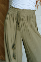 Embark on a stylish journey with our Exciting Escapade Wide Leg Pants, crafted to blend comfort with playful style. Made from woven fabric, these pants offer a lightweight and breathable feel, perfect for all-day wear. The cased elastic waistline ensures a comfortable fit while the ruffle details and geometric embroidery add charm.