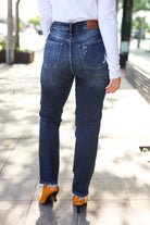 Judy Blue Dark Wash Mid Rise Distressed Straight Leg Jeans