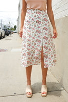 Put Together Ivory Front Slit Floral Print Lined Midi Skirt