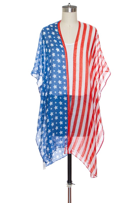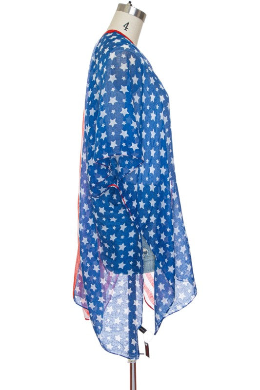 Show your American spirit with this beautiful kimono cardigan. Wear to all patriotic events.
