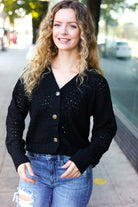 Follow Me Black Pointelle Knit Button Down Cardigan