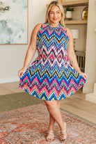 The Chevy to the Levy Chevron Dress is the perfect combination of style and versatility. With a rounded banded neckline, necktie, and cased elastic waistline, this dress is both chic and comfortable. The lined shorts add an extra layer of functionality. Plus, it can even be worn backwards for a fresh new look!