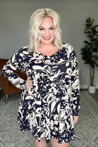 Worthwhile Moment Floral Tiered Dress in Oatmeal and Navy