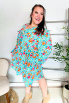 Feeling Femme Aqua Floral Ribbon Bow Tie Babydoll Dress