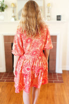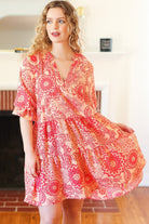 All You Need Peach & Coral Boho Floral V Neck Dress