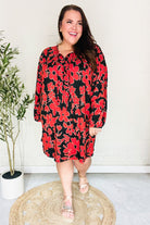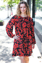 Boldly You Rust & Black Floral Print Front Tie Dress