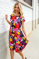Spread Joy Black & Multicolor Floral Flutter Sleeve Babydoll Dress