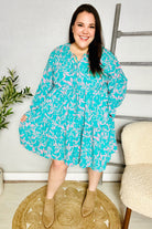 Get your boho 'on with this casual chic tiered long elastic ruffle sleeve leaf print dress. With trendy front ribbon bow ties, side pockets and plenty of swing, this babydoll dress is comfy and a head turner!