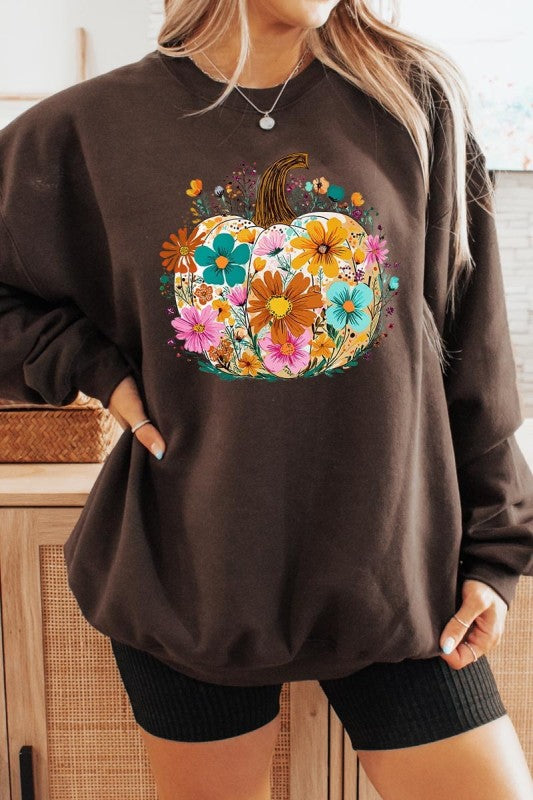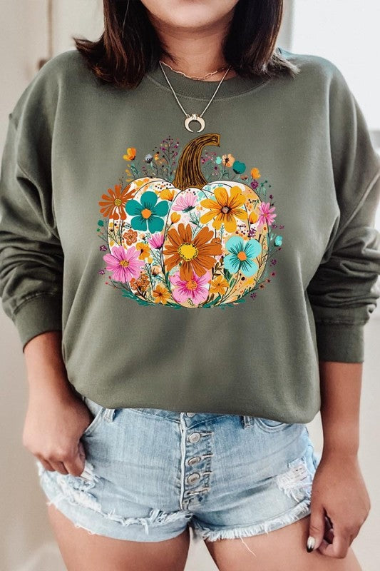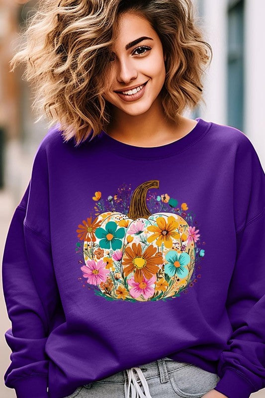 Embrace the beauty of the season with our Floral Pumpkin Graphic Sweatshirt! This unique piece perfectly blends the warmth of autumn with a touch of timeless floral elegance. Featuring a charming pumpkin adorned with intricate floral details, it's the perfect way to celebrate fall in style. Made on a high-quality Gildan Unisex Heavy Blend Crewneck Sweatshirt, it provides a classic, comfortable fit that you'll want to live in. The soft and durable 50% cotton, 50% polyester blend ensures you stay cozy and stylish from the pumpkin patch to the coffee shop.