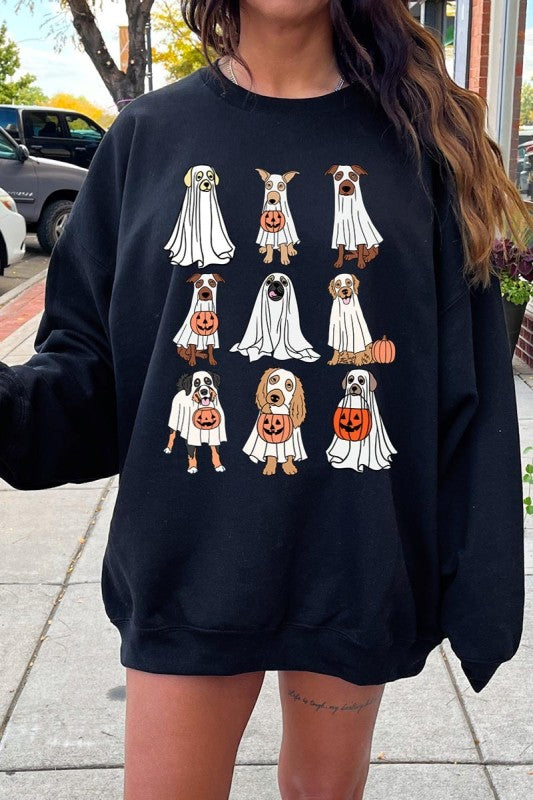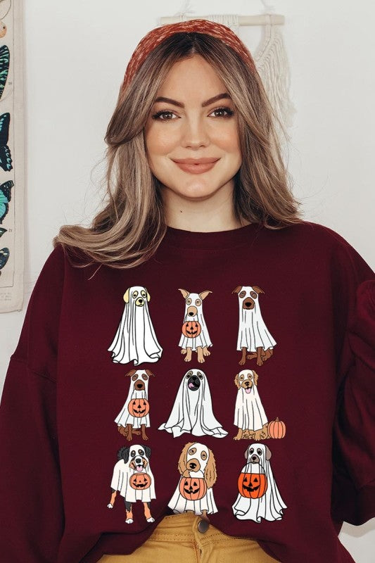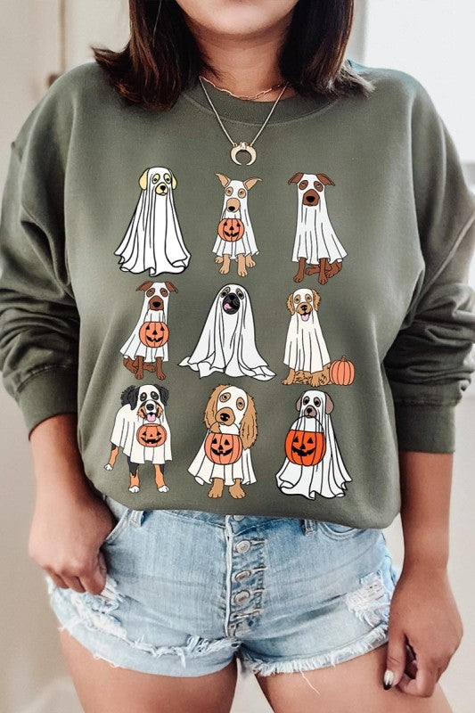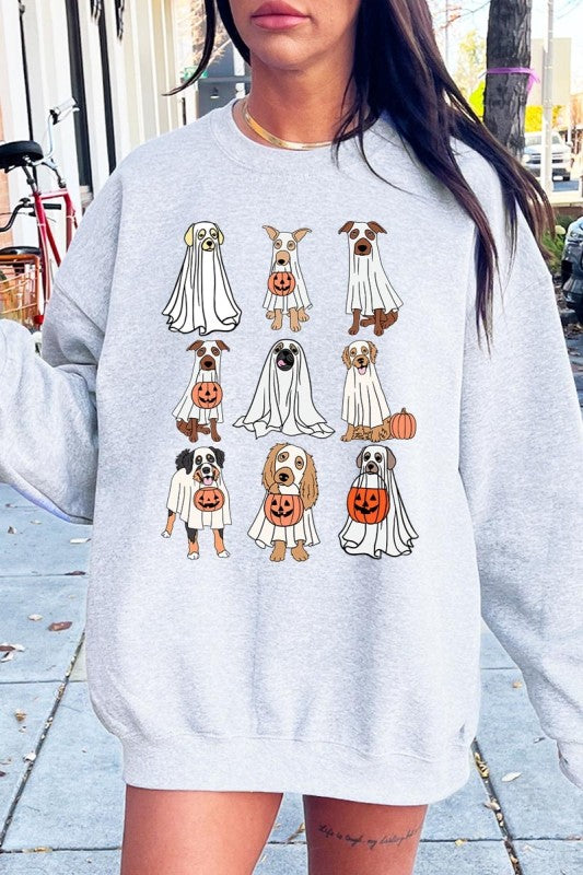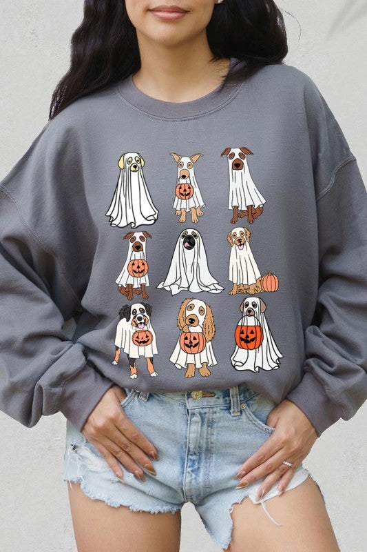 Calling all dog lovers and spooky season enthusiasts! Our Halloween Ghost Dog Graphic Sweatshirt is the perfect way to combine your two favorite things. Featuring a playful and spooky graphic of a ghost dog, this sweatshirt adds a touch of charm and humor to your fall wardrobe. Made on a classic Gildan Unisex Heavy Blend Crewneck Sweatshirt, it's designed for ultimate comfort and durability. The soft, cozy blend of cotton and polyester will keep you warm on all your chilly autumn adventures, from trick-or-treating to snuggling up with your own furry friend.