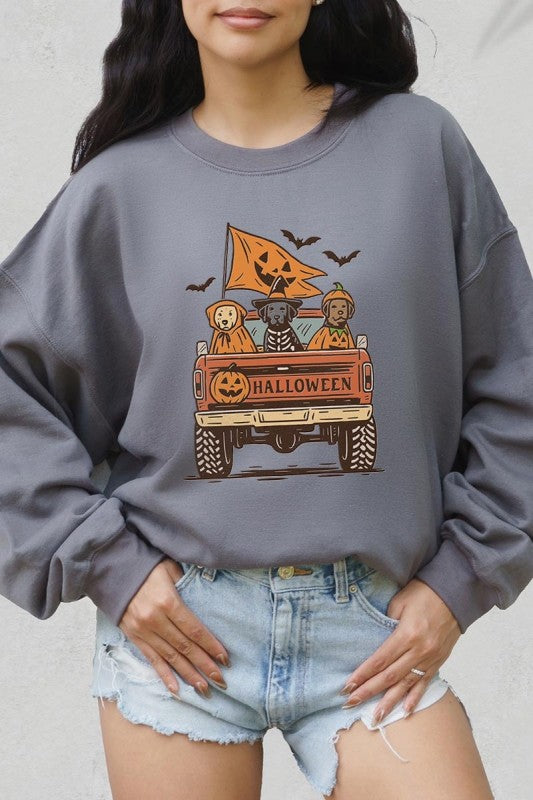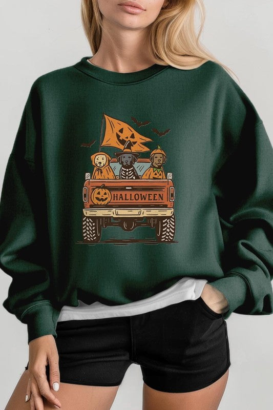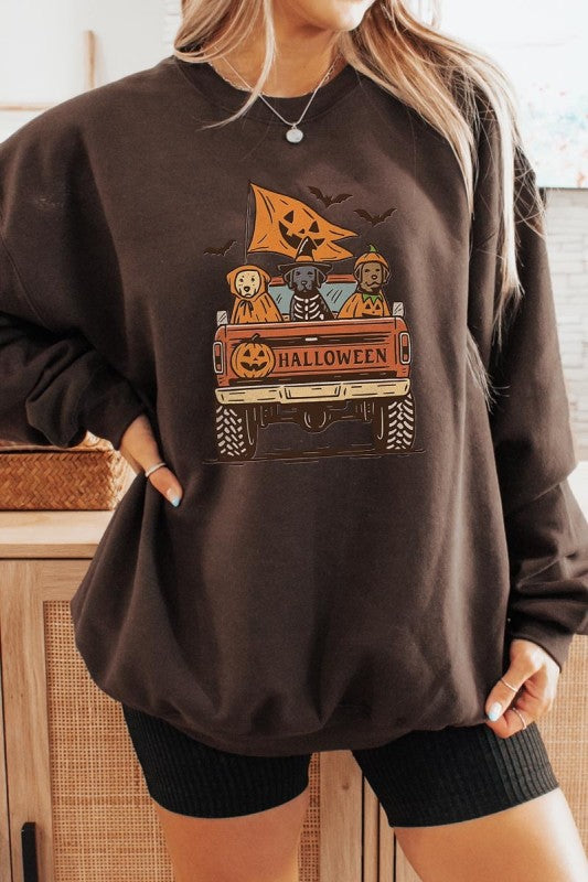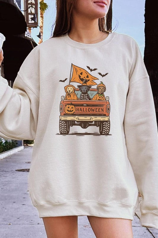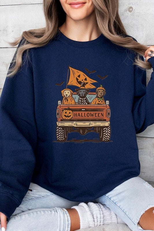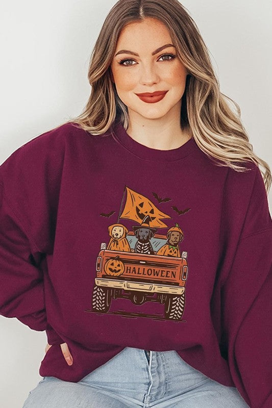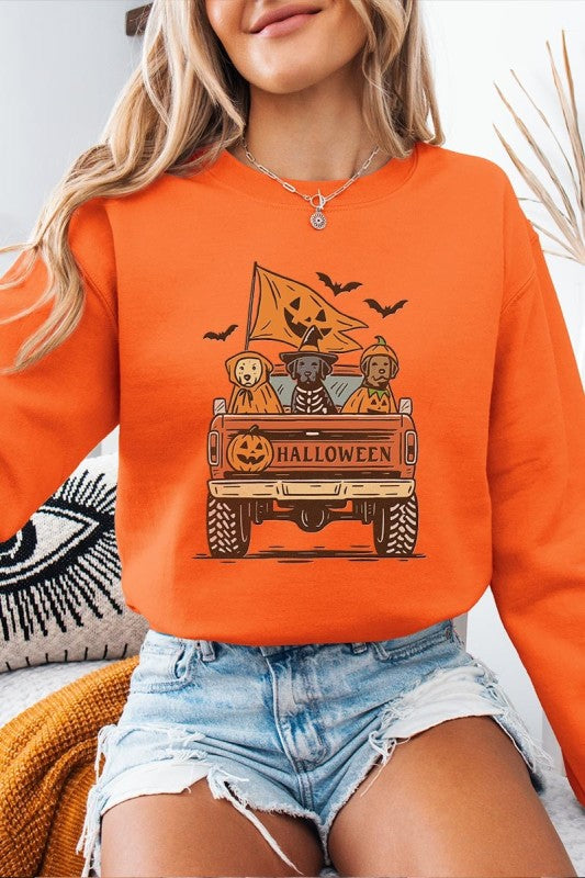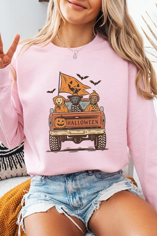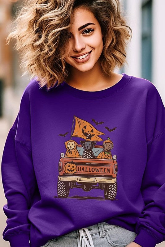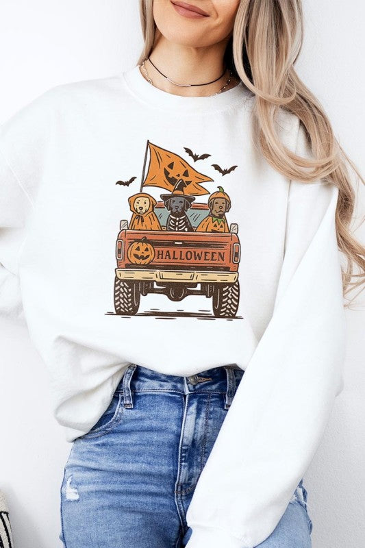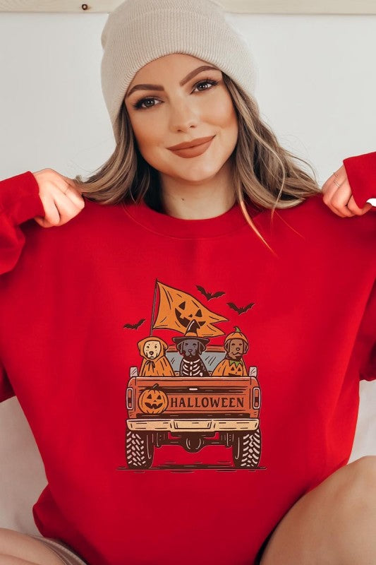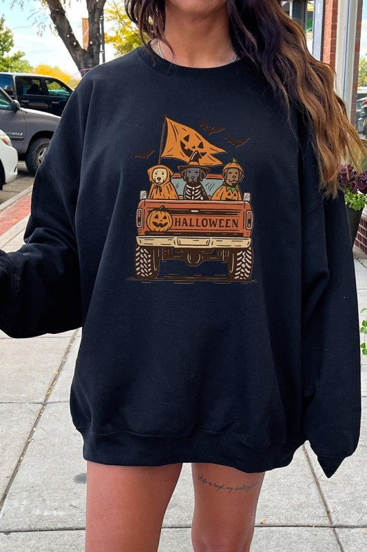 Halloween Truck Dogs Graphic Sweatshirt