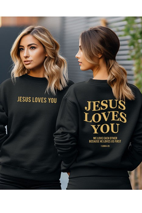 Introducing the "Jesus Loves You" sweatshirt, a perfect blend of comfort, style, and spiritual expression. Crafted by the trusted Gildan brand, this sweatshirt is made from a soft, breathable cotton-polyester blend, ensuring warmth and durability. The classic fit provides a relaxed and cozy feel, making it ideal for everyday wear or those special gatherings where you want to make a subtle yet powerful statement. The words "Jesus Loves You" are emblazoned across the back in elegant, bold lettering, serving as a reminder of your faith and identity. Whether you're lounging at home or out running errands, this sweatshirt is a versatile addition to any wardrobe, offering both inspiration and comfort.