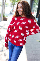 Game Day Red Football Print Jacquard Knit Sweater