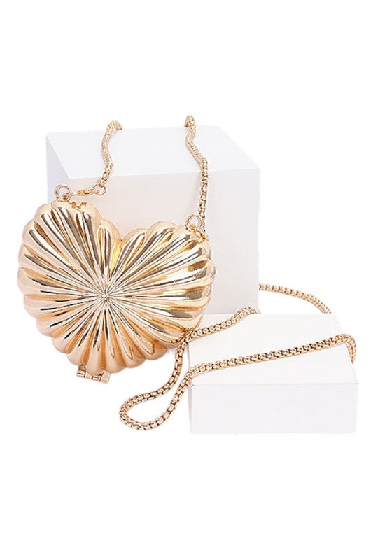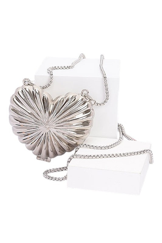 Mini Textured Heart Shape Box Clutch Swing Bag