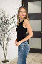 Stay comfortable, chic and versatile in this Any Time, Any Place Bodysuit in Black. Made with lightweight knit and high stretch, this bodysuit features a round neckline, sleeveless design, and fully lined thong style. Plus, with a snap button crotch, it's easy to wear and lined for ultimate comfort. The perfect basic for any outfit!