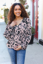 Be Bold Beige Rib Animal Print Button Placard Dolman Pullover
