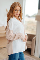 Our Block Party Button Down is perfect for your laidback style. Featuring a textured fabric, ivory and taupe color block design, and a classic collared button down fit, you'll love the modern feel of this timeless look.