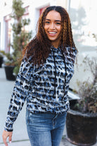 Casual Chic Blue & Black Animal Print Stripe Hoodie