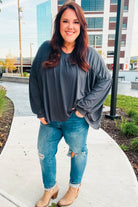 Casual Chic Charcoal V Neck Yoke Modal Knit Top