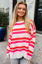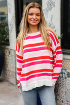 Follow Me Red/Pink Loose Knit Stripe Ribbed Pullover