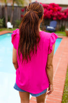 Summer Days Fuchsia Banded V Neck Flutter Sleeve Top