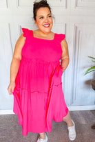 Lots To Love Fuchsia Smocked Flutter Sleeve Tiered Midi Dress