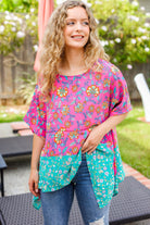 Vacay Ready Fuchsia Paisley Floral Dolman Sleeve Shark Bite Top
