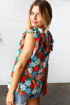 Follow Me Emerald Floral Print Double Ruffle Sleeve Top
