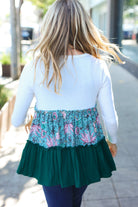 Charming Hunter Green Floral Frill Tiered Color Block Top