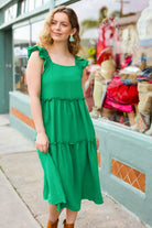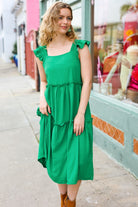 Lots To Love Kelly Green Smocked Flutter Sleeve Tiered Midi Dress