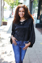 Woven + Front Tie + Elastic Bubble Sleeves + Silky