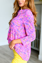 Lizzy Babydoll Top in Magenta Brushstrokes