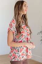 Lizzy Cap Sleeve Top in Coral and Beige Floral