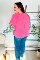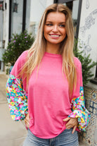 Lock Eyes Pink & Floral Bubble Sleeve French Terry Pullover