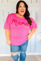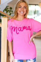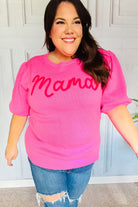 Take A Bow Pink "Mama" Embroidery Puff Sleeve Sweater Top