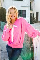 Pretty In Pink French Terry Bow Tie Drop Shoulder Pullover