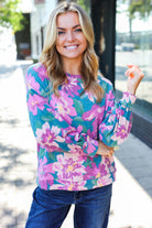 Feeling Femme Teal Floral Brushed Hacci Sweater Top