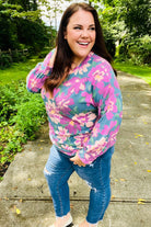 Turn heads this fall with this striking brushed hacci knit sweater featuring banded bubble sleeves. Look adorable while staying cozy with this floral print pullover!