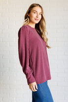 When the Sun Goes Down Mineral Wash Ribbed Knit Top in Wine