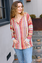 Be Bold Coral & Sienna Stripe Pullover Notched Neck Hoodie