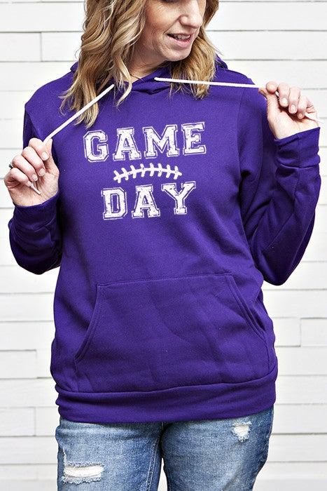 Stay warm and stylish on game day with our super soft and cozy hoodie, made from a durable airlume combed and ringspun cotton/polyester. Featuring a raised puff paint print with a bold Game Day theme, this premium hoodie offers comfort, quality, and team spirit in one perfect package. The front pouch pocket adds functionality and coziness.