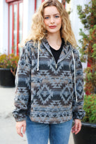 Call For You Grey Aztec Half Zip High Neck Hoodie