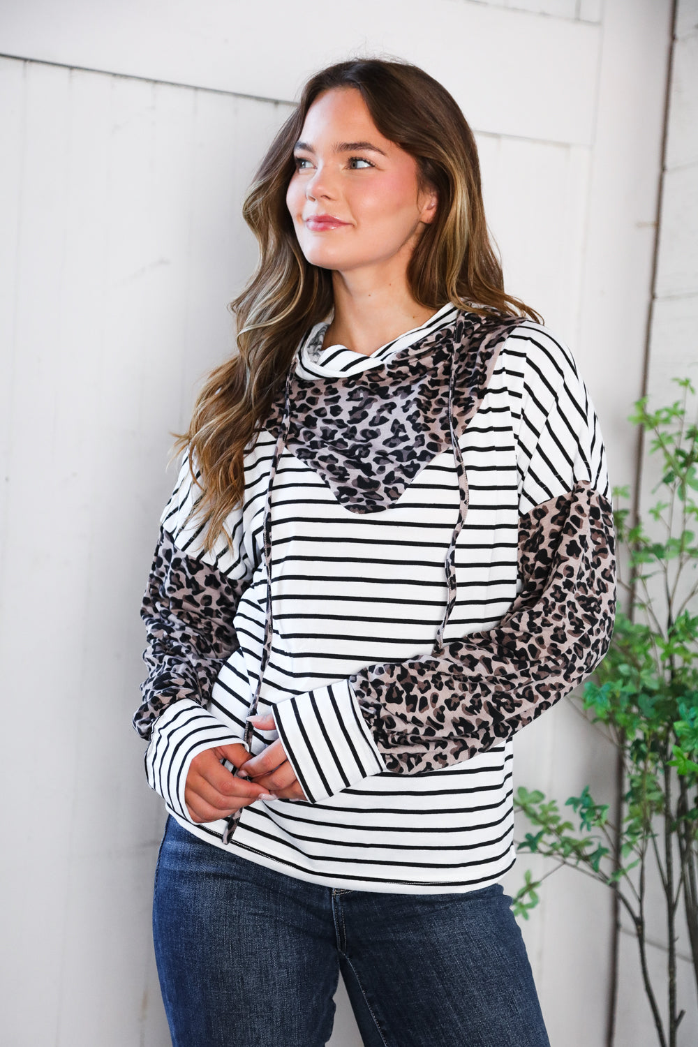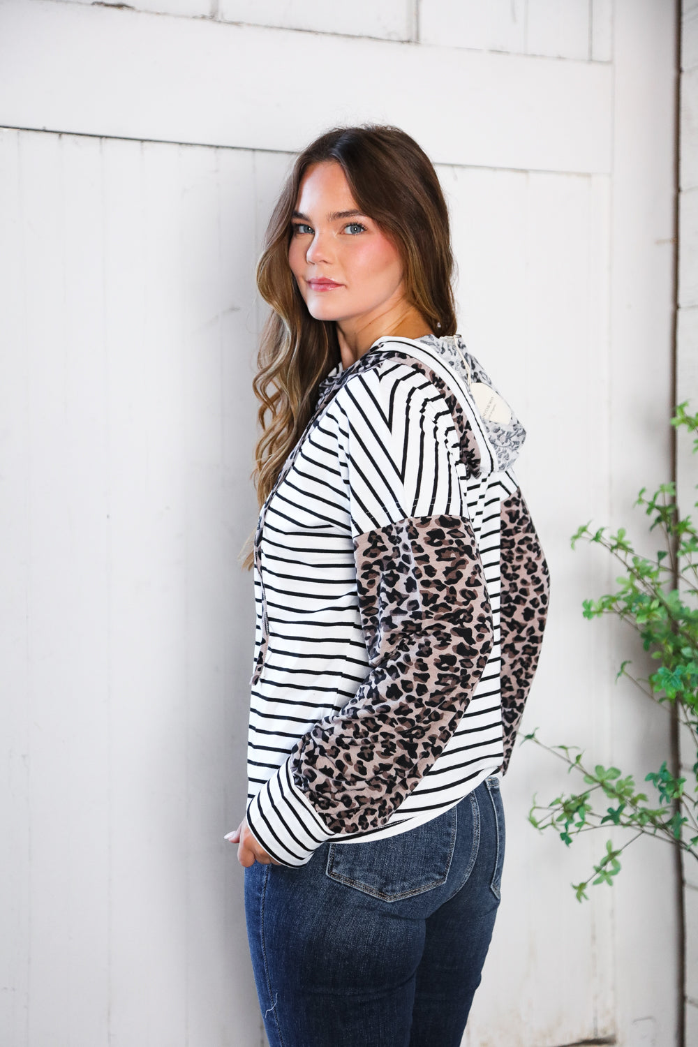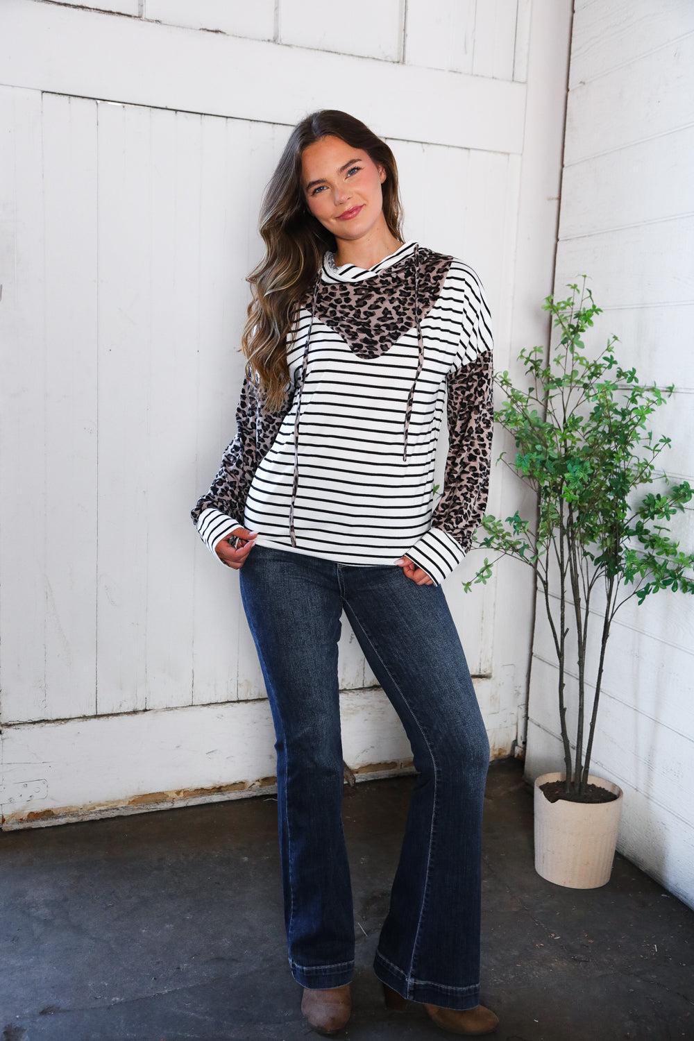 Introducing the On a Wild Streak Hoodie, the perfect fusion of comfort and trend! This hoodie takes casual style up a notch by combining two favorite patterns: a playful animal print and classic stripes. The result is a uniquely stylish piece that's ideal for adding flair to your everyday look.