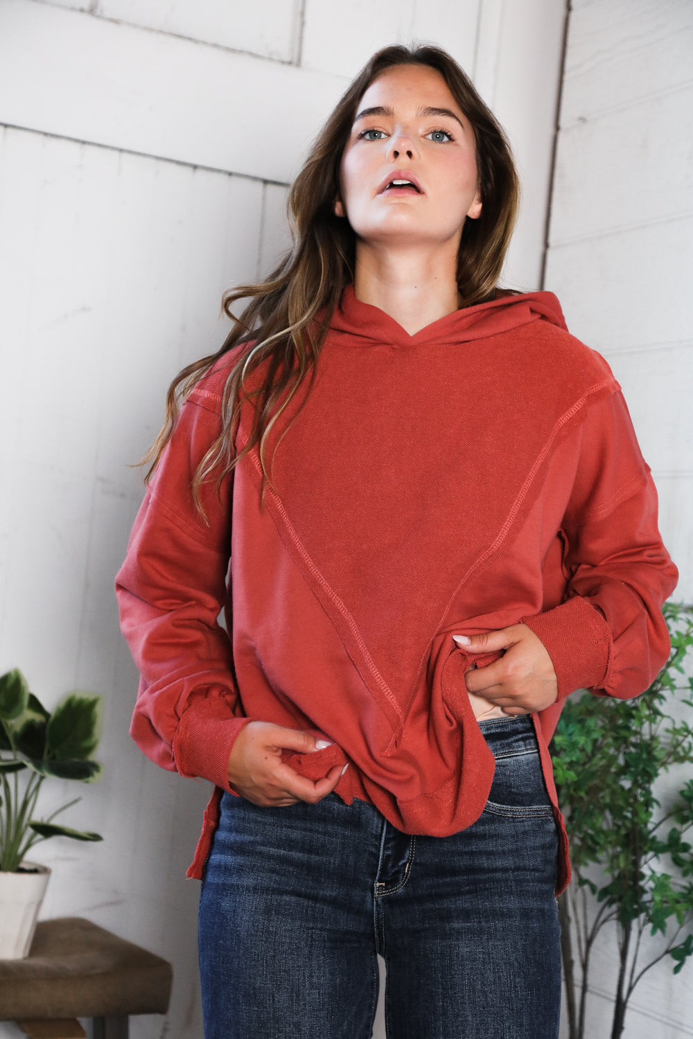 Crafted from a soft, mid-weight knit fabric, this hoodie is your new go-to for comfort. It has a relaxed, slouchy fit with dropped shoulders and a roomy hood, making it feel like a cozy hug. The banded cuffs keep the sleeves in place, and the longer length is perfect for pairing with your favorite leggings or jeans. This hoodie is guaranteed to become an instant staple in your wardrobe.