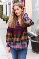 Notch up your winter casual wear with this soft, lightweight multi-plaid color block notched neck hoodie with popular cut edge details and oversized fit. Pair with jeans or leggings this holiday season.