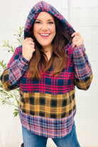 Holiday Ready Red & Mustard Plaid Notched Neck Flannel Hoodie